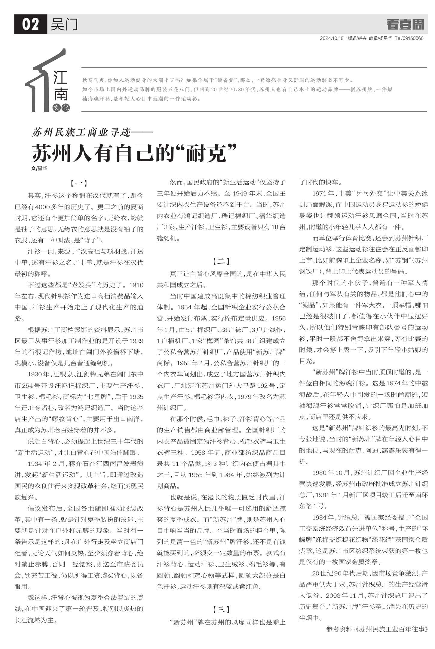 如今市场上国内外运动品牌的服装五花八门,但回到20世纪70、80年代,苏州人也有自己本土的运动品牌——新苏州牌,一件短袖海魂汗衫,是年轻人心目中最潮的一件运动衫。
