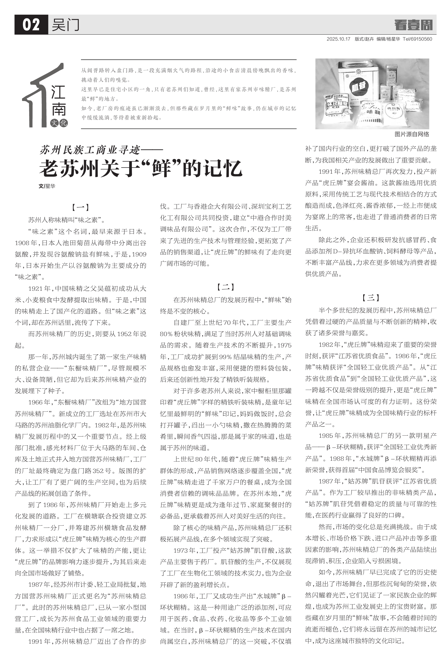 上世纪80年代,随着“虎丘牌”味精生产群体的形成,产品销售网络逐步覆盖全国,“虎丘牌”味精走进了千家万户的餐桌,成为全国消费者信赖的调味品品牌。在苏州本地,“虎丘牌”味精更是成为逢年过节、家庭聚餐时的必备品,更承载着苏州人对美好生活的向往。